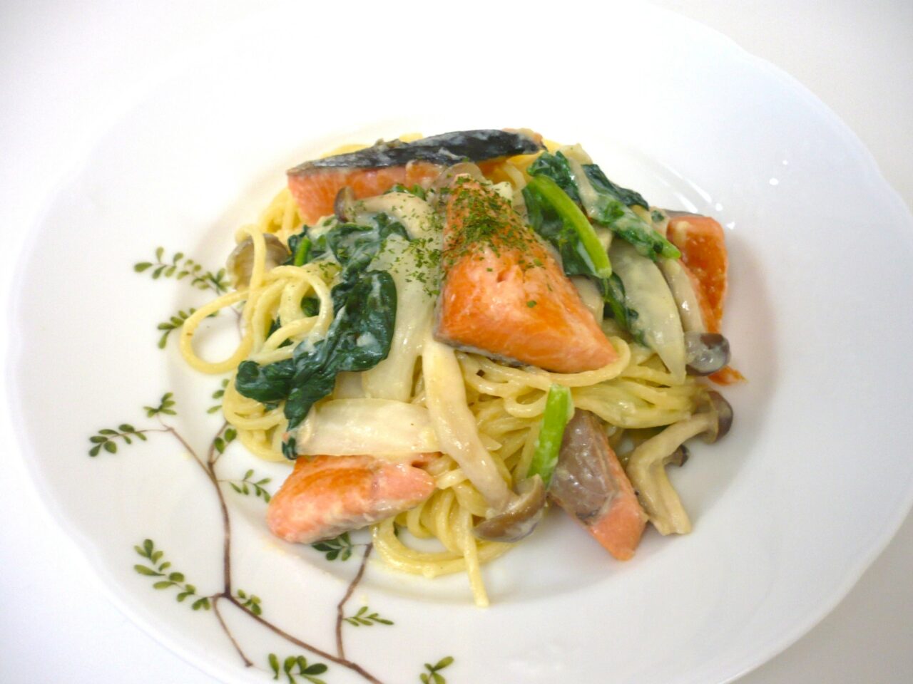 鮭やしめじには卵巣機能を高めたり、子宮内膜の状態をよくする働きがある「ビタミンD」が豊富に含まれています。また、牛乳の代わりに豆乳を使うことによって、カロリーや脂質を抑えることができ、鉄分は多く摂取することができます。